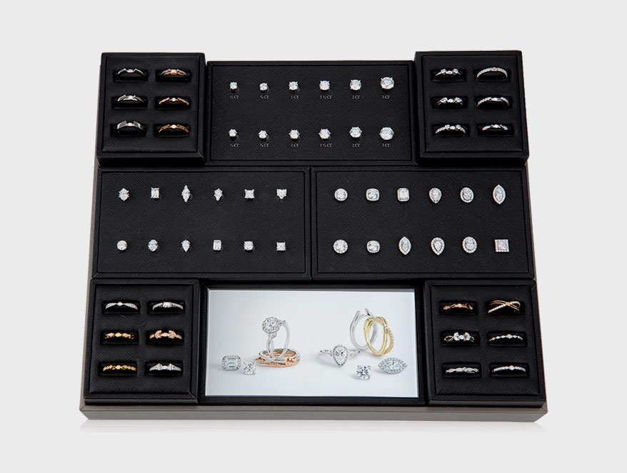 At Adamas, we understand that every engagement ring tells a story — one that should be uniquely crafted, meaningful, and unforgettable. Introducing our Bridal Builder, an interactive display solution designed to help your customers customize and visualize their dream engagement ring right in your showroom.